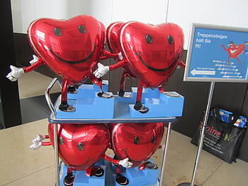 Um die Mitarbeiter zum Treppensteigen zu animieren, gab es an hoch frequentierten Stellen in den Gebäuden und Treppenhäusern Hinweis- und Motivationsschilder. Auf diesen wurden die Vorzüge vom Treppensteigen geschildert. Rote Luftballonherzen, die auf die positive Herzwirkung hinweisen, kamen als Eyecatcher dazu.