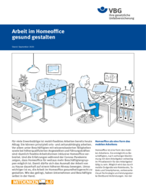 Das Faktenblatt „Arbeit im Homeoffice gesund gestalten“ dokumentiert, worauf Arbeitgeber achten sollten. Das Poster „Tipps für das Homeoffice“ in der betrieblichen Praxis zeigt sowohl Führungskräften Leitlinien auf, wie sie ihre Beschäftigten in der neuen Situation stärken und führen können als auch praktische Handlungshilfen für Mitarbeitende im Home-Office.